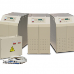 Стабилизатор состоит из трех напольных однофазных силовых блоков, настенного блока коммутации и комплекта кабелей для соединения всех блоков между собой.